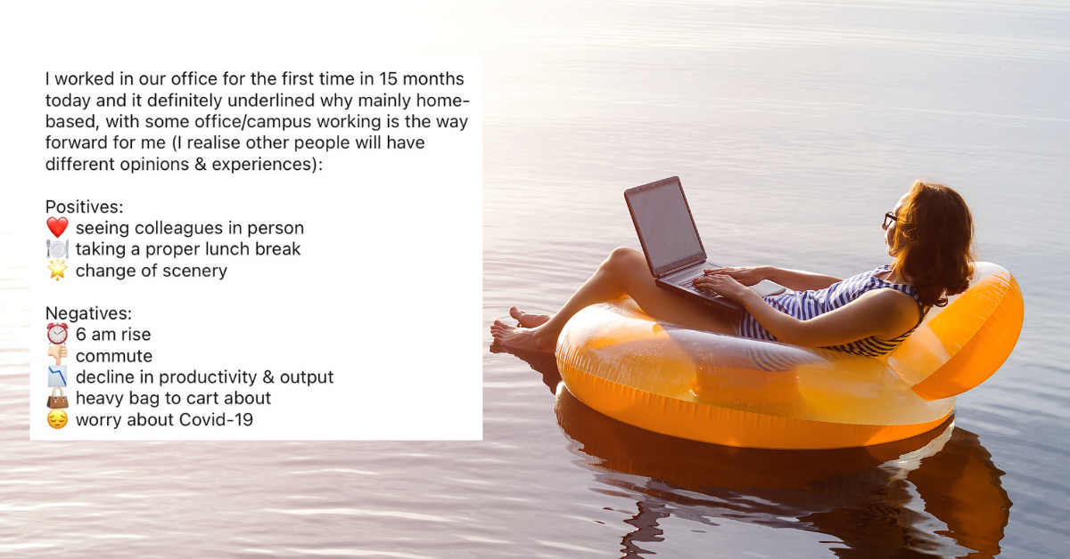 Liderzy dużych i małych organizacji walczą o zdefiniowanie strategii powrotu do biura, która zapewni równowagę pomiędzy interakcjami osobistymi i wirtualnymi. Wobec braku danych wielu liderów opowiada się za modelami hybrydowymi opartymi na intuicji. Nie trzeba daleko szukać, aby znaleźć przykłady firm opowiadających się za powrotem do biur, „spotkania się z ludźmi” lub powszechnym przekonaniem, że zaangażowanie lub innowacyjność cierpi w środowisku wirtualnym.